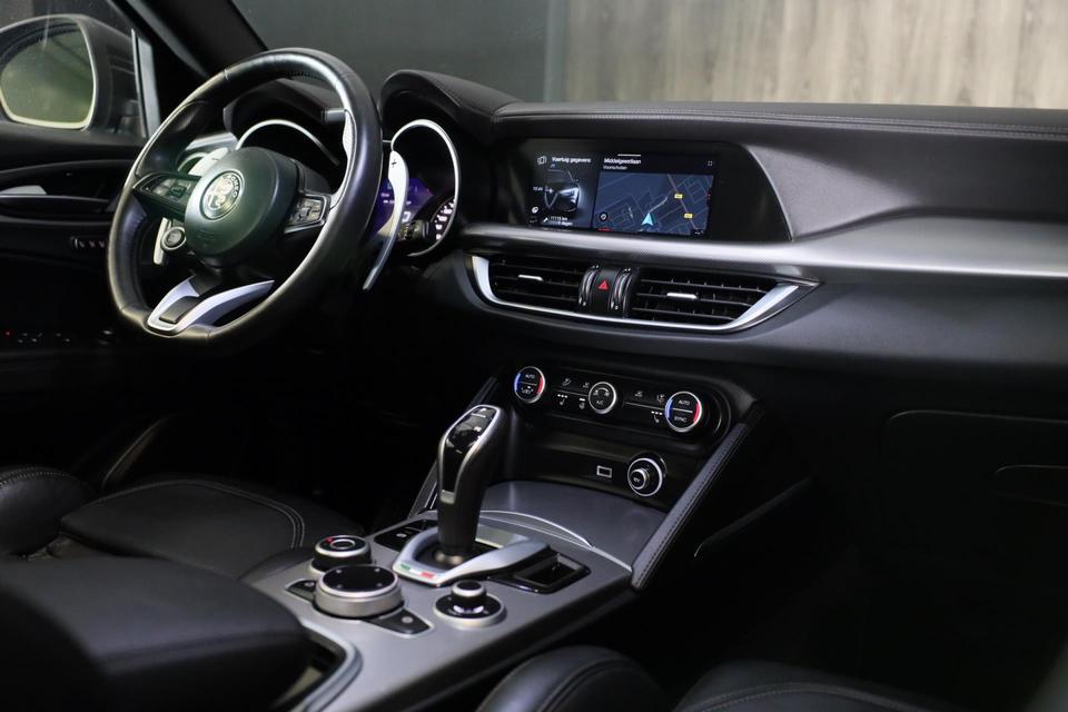 Gebouwd voor liefhebbers van autorijden, deze Alfa Romeo STELVIO levert sportieve prestaties en onafgebroken rijplezier. De uitstekende prestaties van deze auto komen van de viercilinder motor en de automatische transmissie. Hoge kwaliteit is ook binnenin aanwezig. Kijkt u maar naar de leren bekleding! U past de stoelen moeiteloos aan, ze zijn elektrisch in te stellen en hebben bovendien een geheugen. De achterbankverwarming, het verwarmbare stuurwiel en de verwarmbare voorstoelen brengen passagiers en bestuurder snel weer op temperatuur, ongeacht hoe koud het buiten is. Comfort, licht en het complete gevoel van ruimte wordt verzorgd door het elektrisch bediende panoramadak. De elektrische achterklep opent met een druk op de knop, zodat u gemakkelijk toegang heeft tot de bagageruimte. De gasontladingslampen van de xenonverlichting zorgen voor een krachtige en heldere lichtbundel. In deze auto profiteert u onder andere ook van: open dak, 21 inch lichtmetalen velgen, zwarte hemelbekleding, extra getint glas, in delen neerklapbare achterbank en LED-achterlichten.