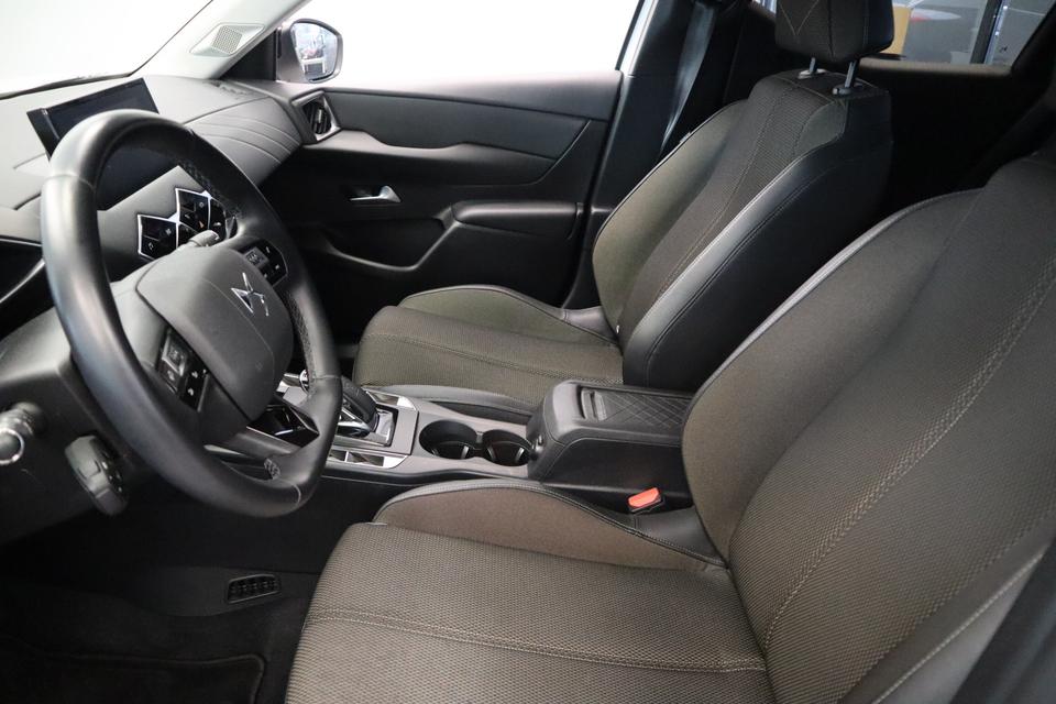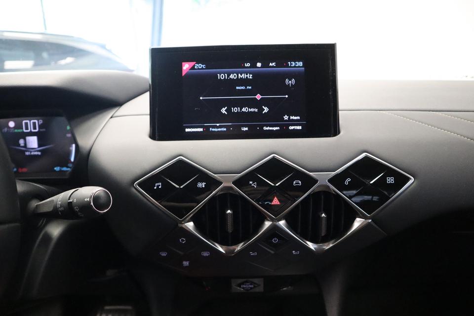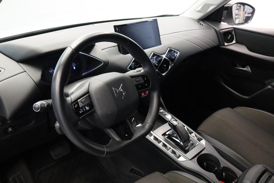 Voor het overzicht tijdens iedere rit is deze DS 3 Crossback voorzien van een gemakkelijk afleesbaar digitaal dashboard. Voor storingvrije digitale radio-ontvangst zorgt de DAB-ontvanger. Parkeersensoren zijn een handig hulpmiddel om parkeerschades te voorkomen. Natuurlijk is een complete auto als deze ook voorzien van sensoren die de omgeving in de gaten houden. Deze DS heeft niet alleen een automatisch inschakelbare verlichting aan boord, maar ook een regensensor. Met ingeschakelde cruise control zit u ontspannen achter het stuur. Natuurlijk behoren airconditioning, automatisch dimmende binnenspiegel, lederen stuur, centrale deurvergrendeling met afstandsbediening en boordcomputer ook tot de uitrusting van deze complete auto.