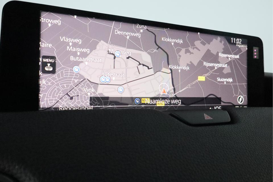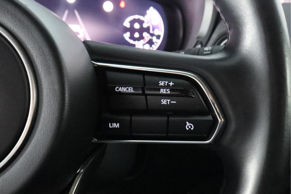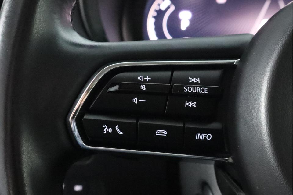 Snelheid, brandstofinfo, noem maar op. Het digitale dashboard houdt u permanent op de hoogte. Goed en overzichtelijk. Met behulp van de achteruitrijcamera kunt u zo strak inparkeren als u maar wilt! Oliepeil, bandenspanning, sloten en andere functies zijn via een speciale app overal te checken dankzij Connected Services. Een belangrijke veiligheidsvoorziening is de bediening van het audiosysteem en het full map navigatiesysteem, via knoppen op het stuur en middels spraakbediening. DAB-ontvangst geeft daarbij een kraakheldere ontvangst. Bij verandering van rijrichting analyseert de kruisend verkeer detectie automatisch of tegenliggers een risico vormen. Zo ja, dan volgt meteen een waarschuwing. De uitrusting van deze Mazda is met electronic climate control, regensensor, cruise control, keyless entry, bagage afdekhoes en boordcomputer behoorlijk compleet.
