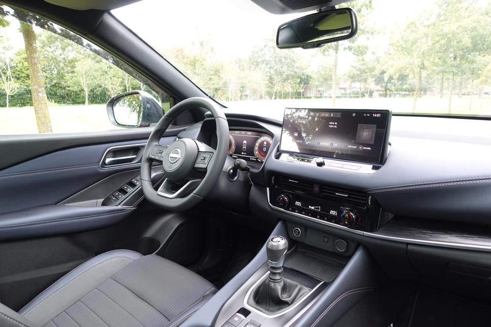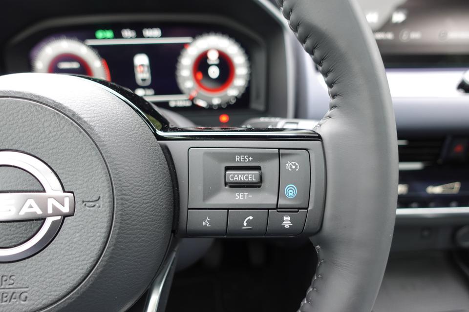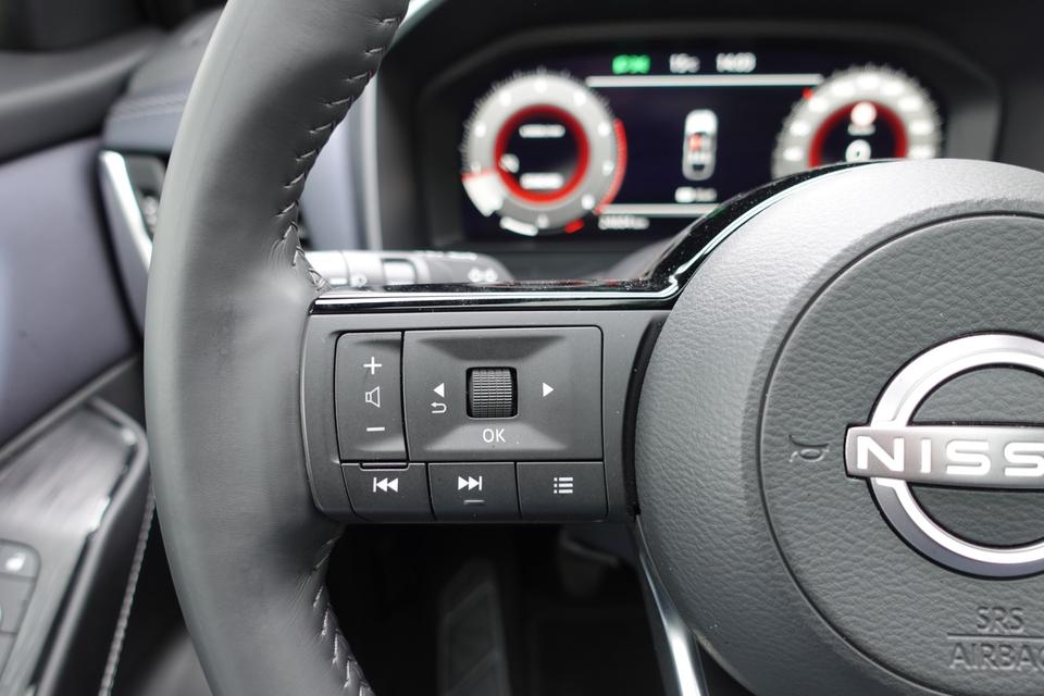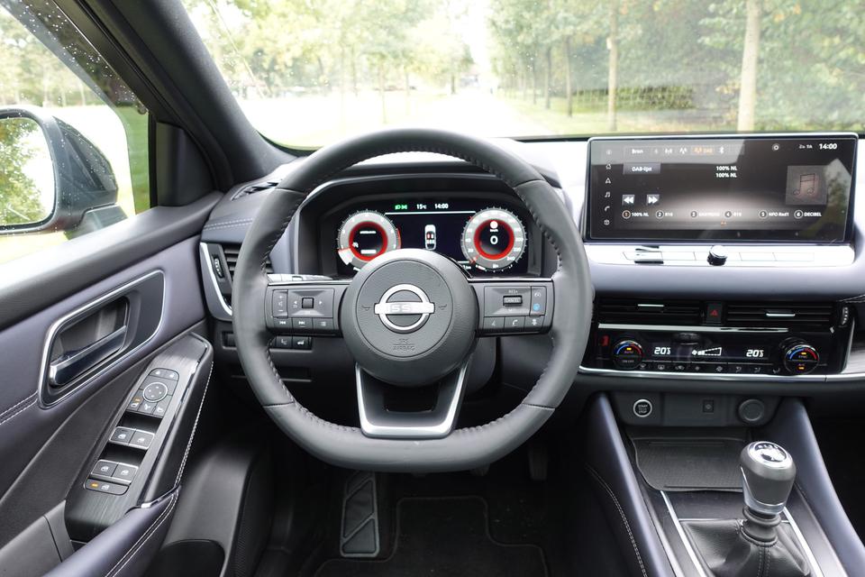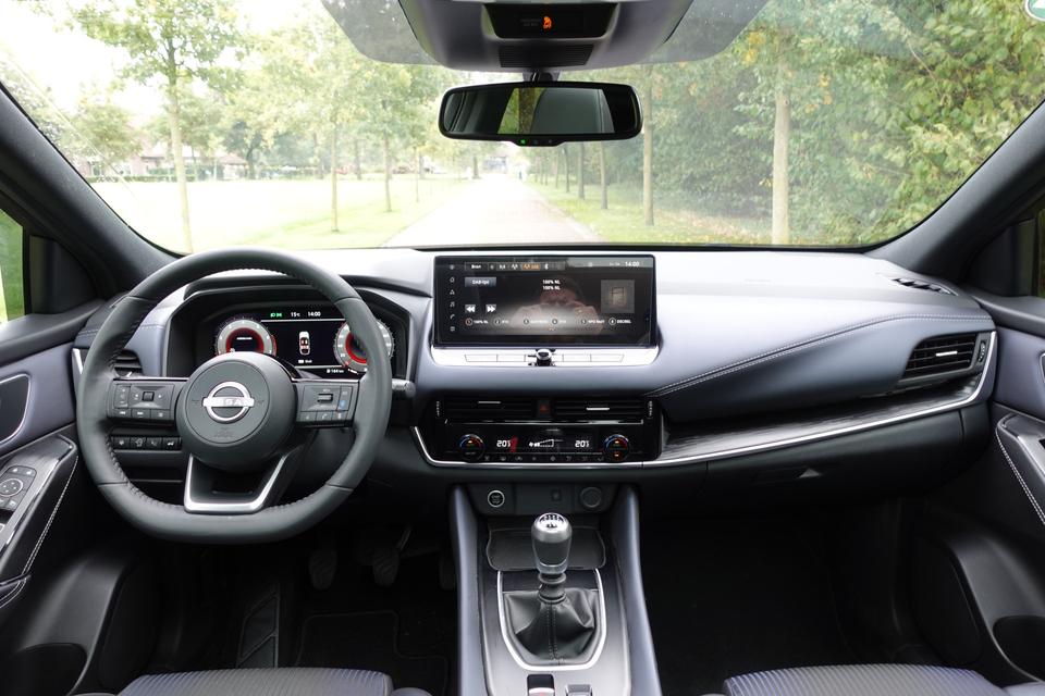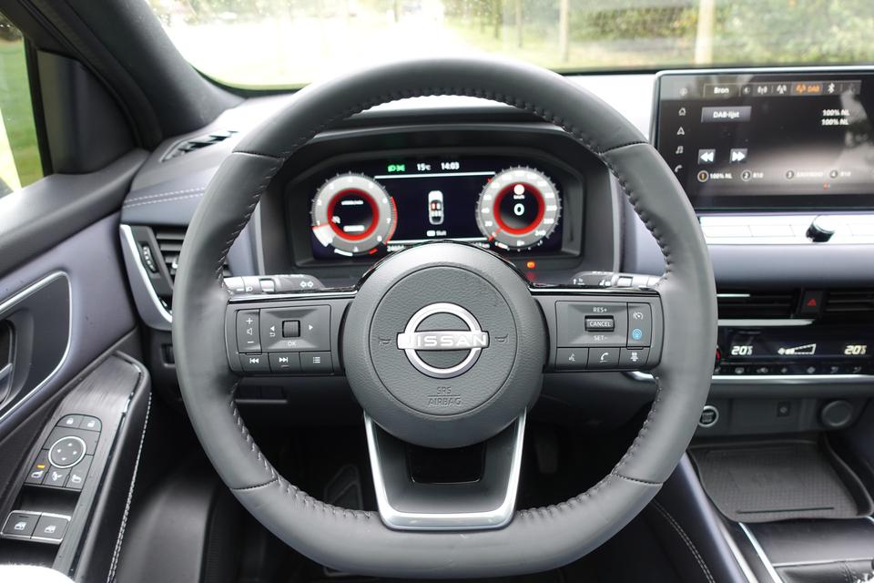 Snelheid, brandstofinfo, noem maar op. Het digitale dashboard houdt u permanent op de hoogte. Goed en overzichtelijk. Met de 360 graden camera op deze auto wordt het rijden een heel stuk veiliger, dankzij het optimale zicht dat het biedt. Adaptive cruise control is een comfortabele en veilige optie. Het systeem reguleert de snelheid en houdt automatisch afstand tot uw voorligger. Deze Nissan Qashqai is 'connected'. Belangrijke functies worden permanent gemeten en zijn uit te lezen via een speciale app, ook op afstand. In deze Qashqai vindt u schakelaars op het stuur om het full map navigatiesysteem te bedienen en het audio-installatiesysteem met DAB-ontvangst. Extra opties op deze auto zijn: WIFI-hotspot, achteropkomend verkeer waarschuwing, kruisend verkeer detectie, automatische airconditioning, draadloos opladen en regensensor.