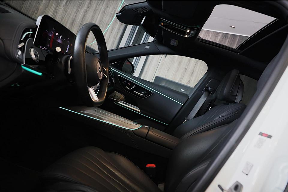 Alle technologie in de Mercedes-Benz E-klasse is er op gericht om uw rit veilig en gemakkelijk te laten verlopen. Met de AMG Line Exterieur mag deze auto zeker gezien worden. De viercilinder motor en de automatische transmissie maken het rijden met deze auto tot een waar feest. De vierwielaandrijving is niet alleen heel prettig op onverharde wegen en nat wegdek, maar ook als je de bergen in gaat, bijvoorbeeld op wintersport. U wilt comfort? Die is er, met het lederen interieur. U wilt gemak? Kijk dan even naar de elektrisch bedienbare achterklep. De verwarmbare voorstoelen inclusief massagefunctie benadrukken nog maar eens dat we hier te maken hebben met een regelrechte verwenauto. Neem plaats op de comfortabele stoelen. Dankzij de elektrische bediening en het geheugen is het eenvoudig om hierin de beste zitpositie te vinden. Door de luchtvering en de ergonomische comfortstoelen rijdt u altijd uiterst comfortabel op elk type weg. Het elektrisch bediende cabriodak opent en sluit automatisch. Ook verwarmd stuurwiel, schuif- en kanteldak, 20 inch lichtmetalen velgen, LED koplampen, AMG Line Exterieur en warmtewerend glas horen tot de voorzieningen op deze auto.