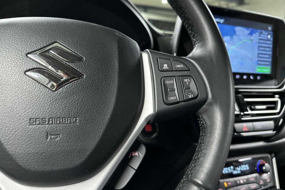 Met de hulp van vier camera's, biedt de 360 graden camera op deze auto een panoramisch zicht, wat bijzonder nuttig is bij het parkeren en manoeuvreren. Adaptive cruise control is veilig en comfortabel. De snelheidsregelaar houdt automatisch afstand tot het voertuig dat voor u rijdt. Had u de auto nou wel afgesloten? Met Connected Services checkt u het overal en altijd. Een optie die de veiligheid verhoogt, is de bediening vanaf het stuur van het audiosysteem (met DAB-radio!) en het full map navigatiesysteem. Omdat u nu eenmaal niet overal ogen heeft, is deze Suzuki S-Cross voorzien van een achteropkomend verkeer waarschuwing die registreert wanneer de afstand tot uw achterligger te krap is. De uitrusting van deze Suzuki is met electronic climate control, sportstuur met schakelpaddels, regensensor en keyless entry behoorlijk compleet.