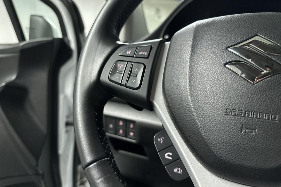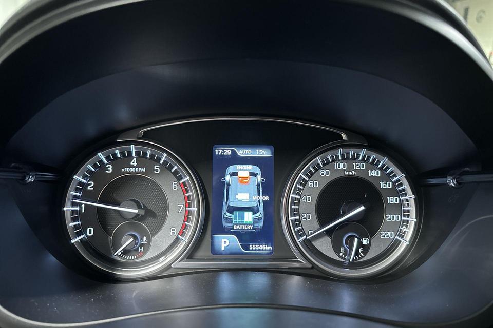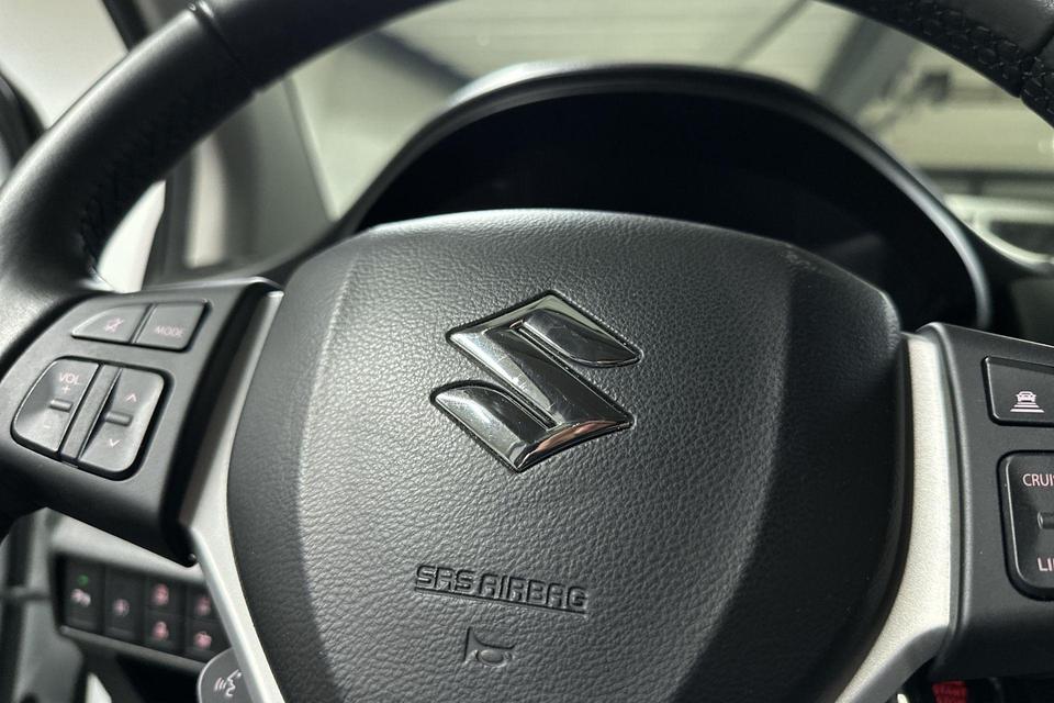 De geavanceerde technologie in deze Suzuki is in staat om onderweg het verkeer om u heen te monitoren en er op te reageren. Zo hebt u als het ware een automatische co-piloot aan boord. U rijdt ook veiliger omdat deze auto voor u de verkeersborden langs de weg kan lezen. De belangrijkste borden worden op uw instrumentarium geprojecteerd, zodat u ze niet kunt missen. Een camera houdt de juiste koers binnen de rijstrook in de gaten en het Lane-keeping systeem corrigeert bij afwijkingen. Het systeem van forward collision warning, of in gewoon Nederlands 'botswaarschuwing', treedt in werking als de sensor te weinig afstand signaleert met een voor- of tegenligger. Ook helpen het dodehoekdetectie, hill hold functie, brake assist, vermoeidheidsherkenning en bandenspanningcontrolesysteem, uw rit tot een veilige rit te maken.