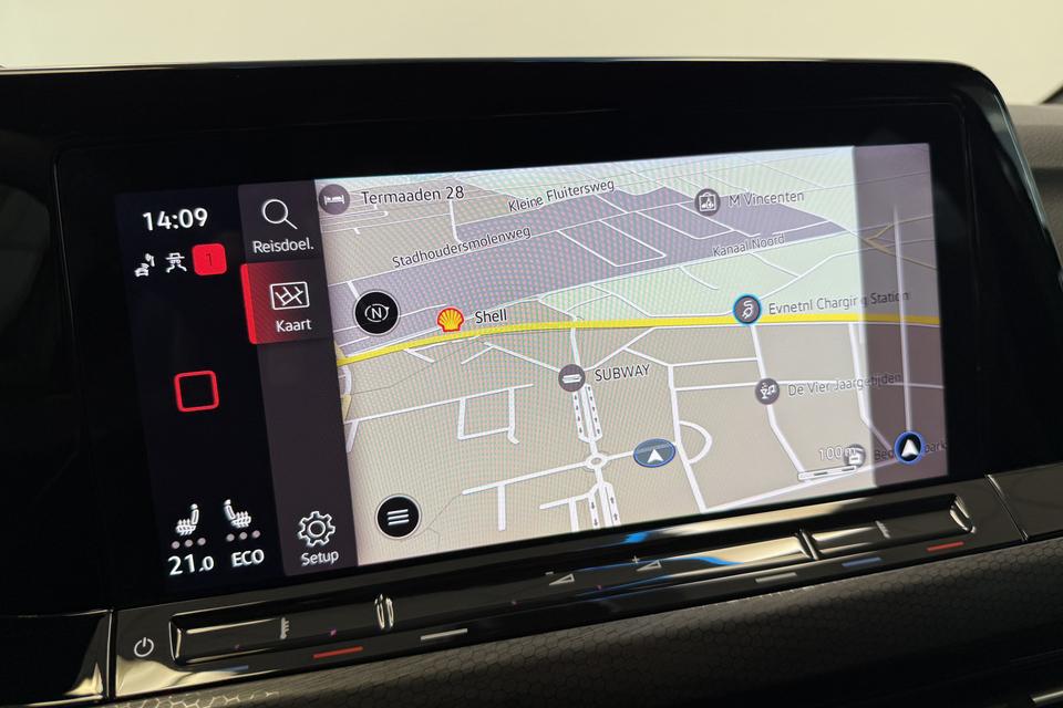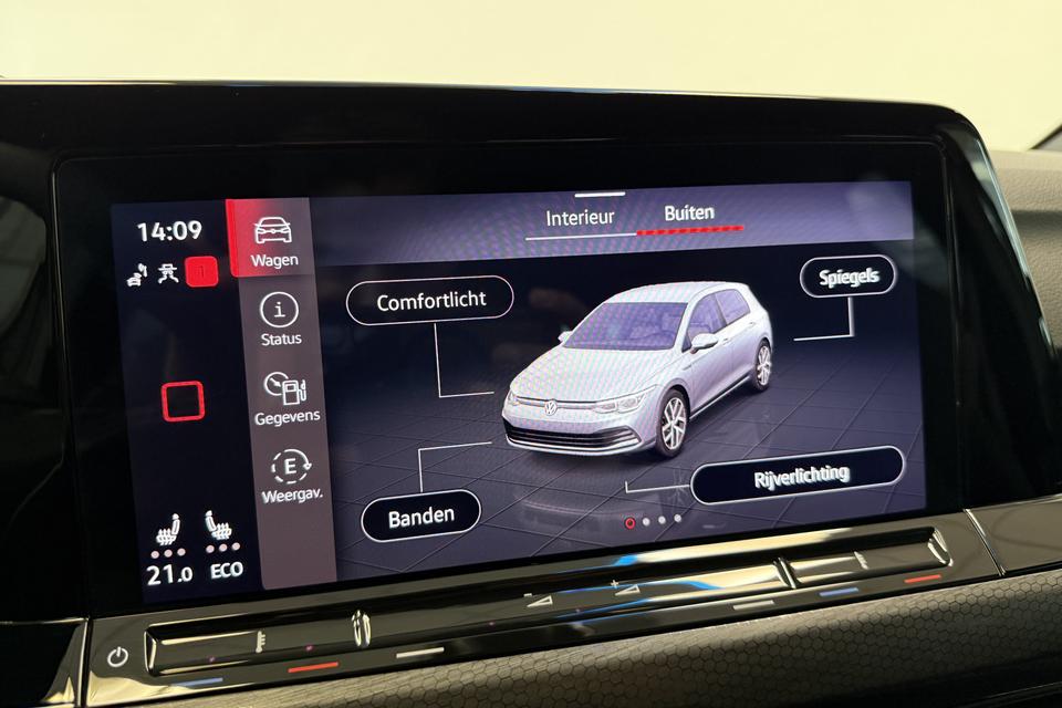 Zoals u mag verwachten van deze Volkswagen Golf is hij uitgerust met een reeks aan actieve veiligheidssystemen. Verkeersbord-detectie herkent verkeersborden en toont deze op het instrumentarium van de auto. Ongemerkt buiten de rijstrook raken? Nee hoor, het Lane-keeping systeem waarschuwt en corrigeert. Het systeem van forward collision warning, of in gewoon Nederlands 'botswaarschuwing', treedt in werking als de sensor te weinig afstand signaleert met een voor- of tegenligger. Verder is deze auto uitgerust met hill hold functie, vermoeidheidsherkenning, autonoom remsysteem en bandenspanningcontrolesysteem.