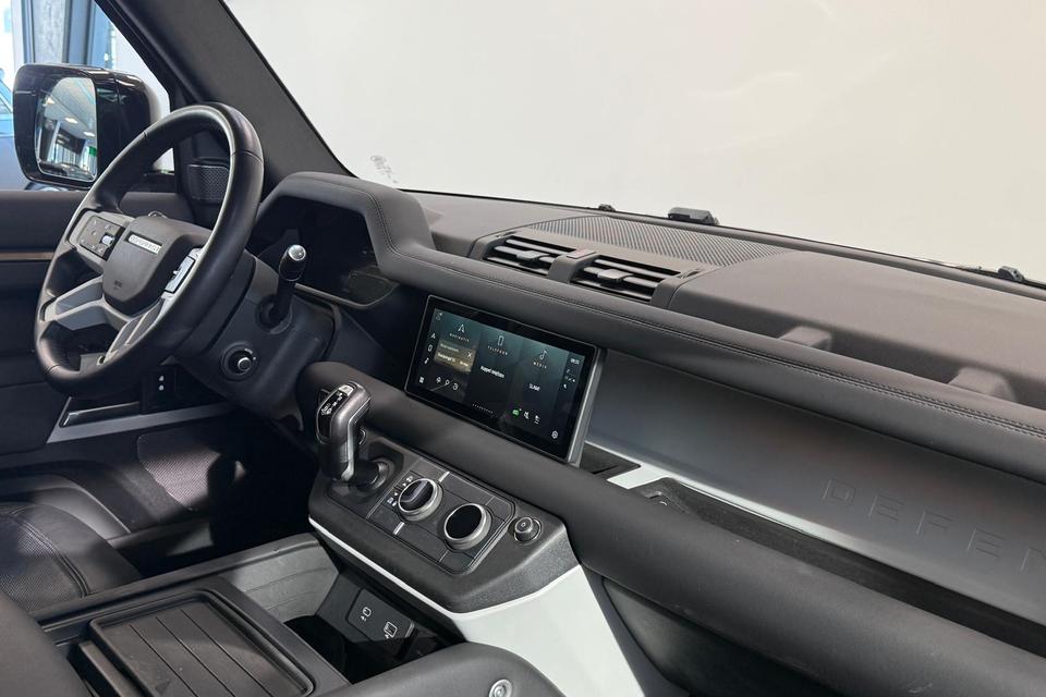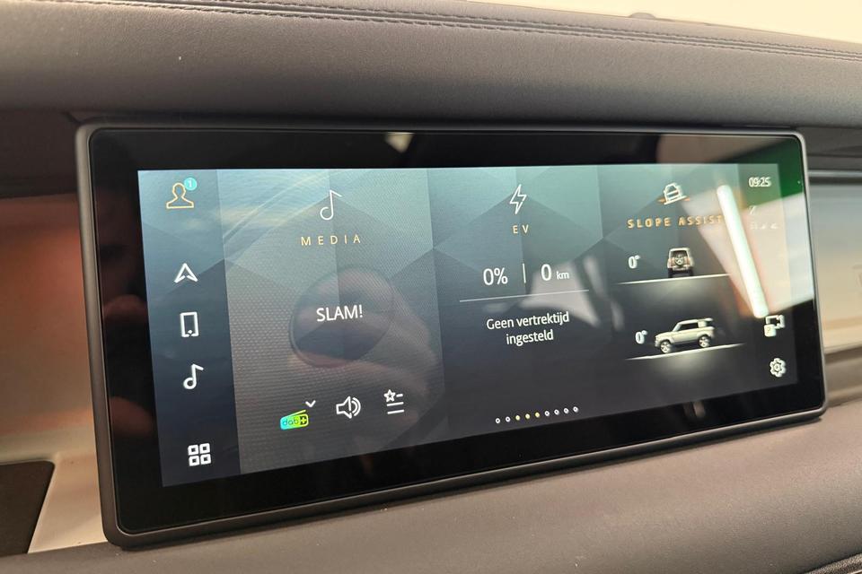 Deze auto is voorzien van innovatieve systemen die u onderweg begeleiden en beschermen. Een belangrijke bijdrage aan de veiligheid onderweg levert de verkeersbord-detectie in deze Land Rover. Deze Land Rover Defender 110 is ook behulpzaam als het gaat om een rechte koers. Het Lane-keeping systeem signaleert en corrigeert als u onbedoeld de rijstrooklijnen dreigt te overschrijden. Op lange ritten voorkomt de vermoeidheidsassistent dat uw concentratie afneemt. U bent mede dankzij dodehoekdetectie, hill hold functie, brake assist en bandenspanningcontrolesysteem steeds veilig onderweg.